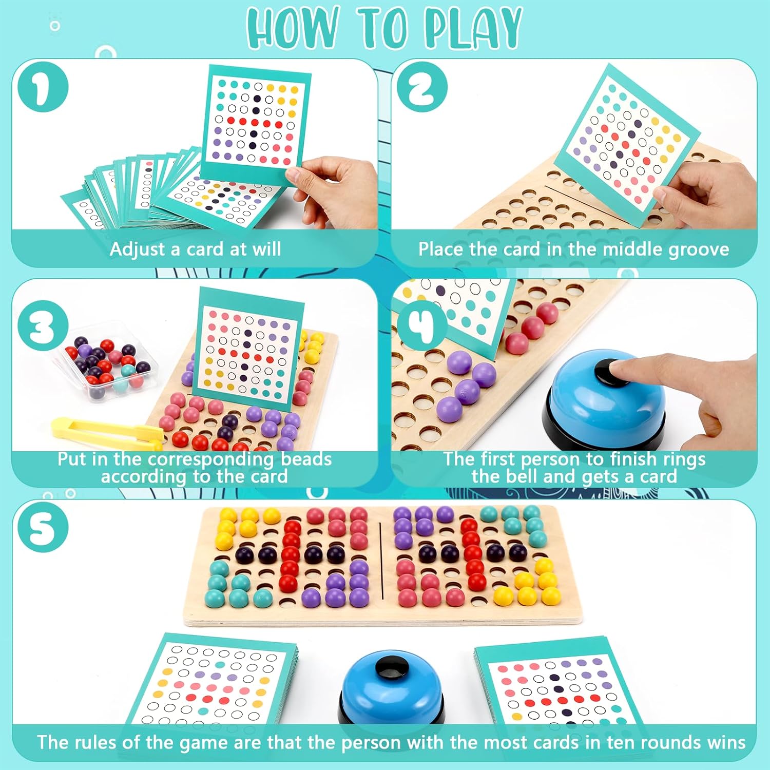 The two players race to arrange the balls in the base using a spoon, tongs or Chinese sticks according to the card, which is arranged first, presses the bell and wins the card