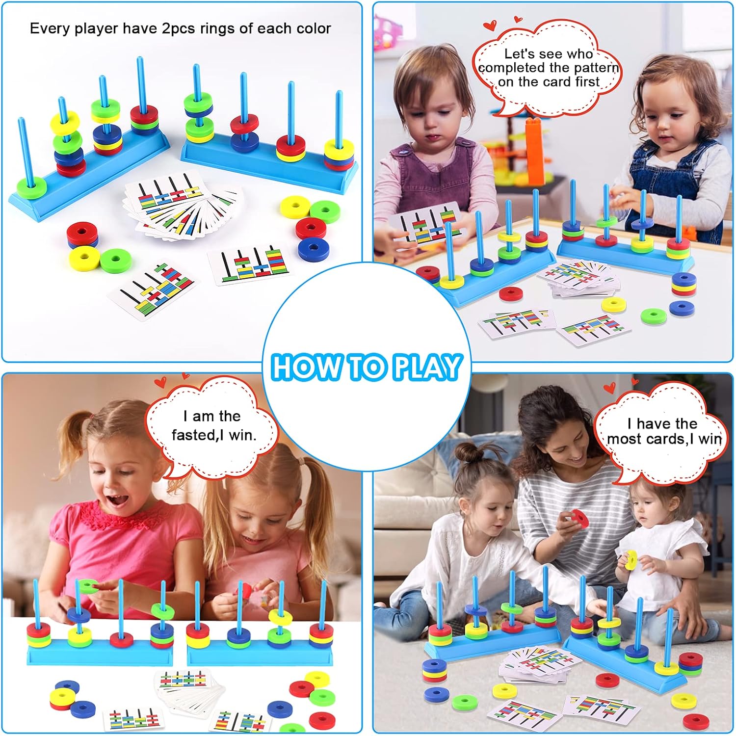The two contestants compete to arrange the magnetic rings at the base in the same order of colors and with the same spacing