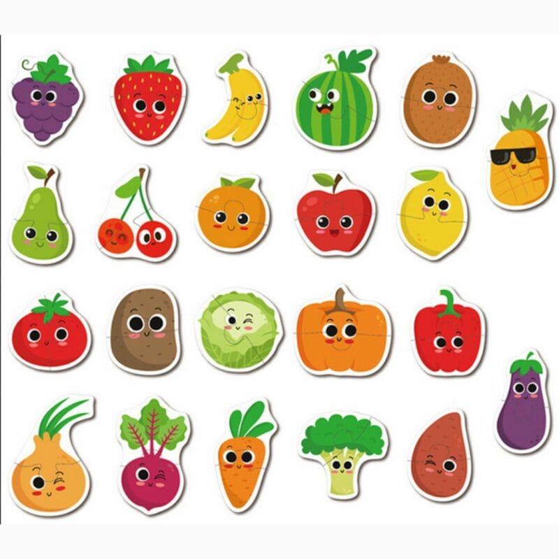 – Available in three types: Animals. Vegetables and fruits. Transportation